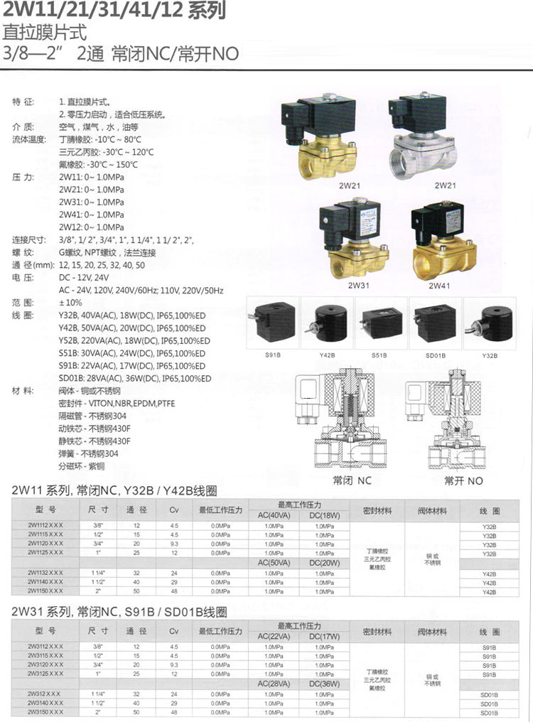 2W11,2W31,2W21,2W12,2W41,2W1112,2W3112,2W2112,2W1212,2W4112,直拉膜片式電磁閥
