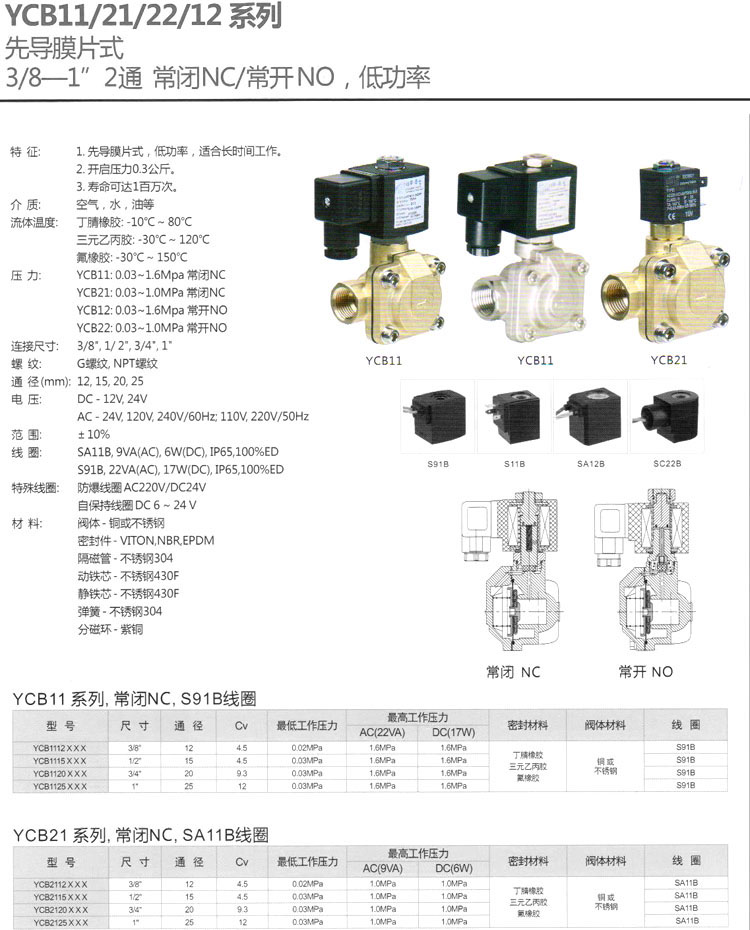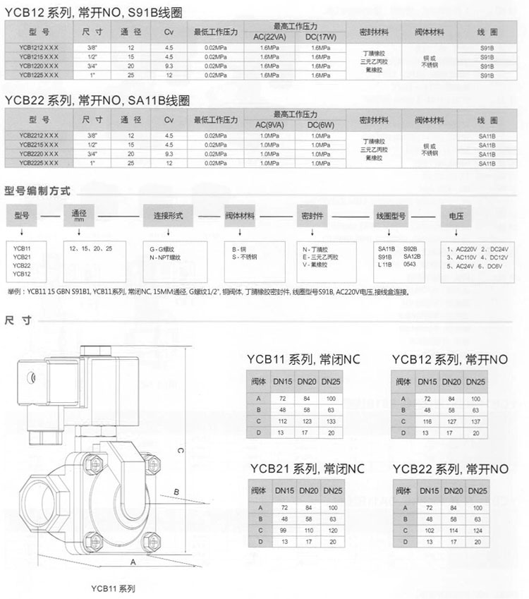 YCB11,YCB12,YCB21,YCB22,YCB1112,YCB2112,YCB1212,YCB2212,YCB1115,YCB2115,先導(dǎo)膜片電磁閥