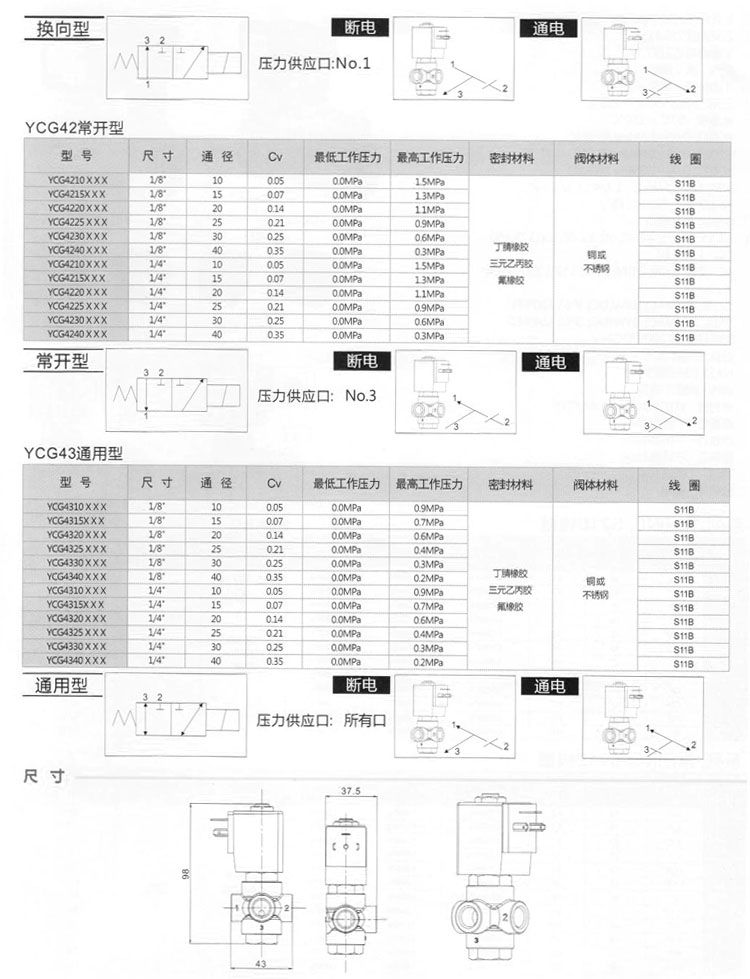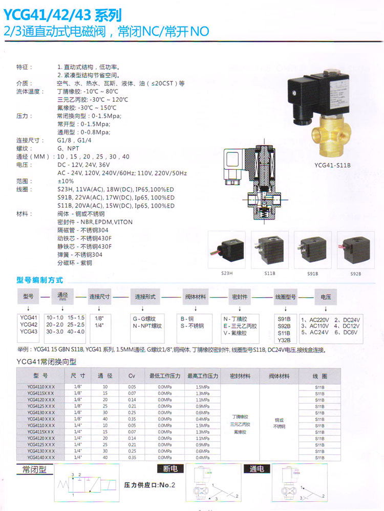 YCG41,YCG42,YCG43,YCG4110,YCG4115,YCG4210,YCG4215,YCG4310,YCG4315,直動(dòng)式電磁閥