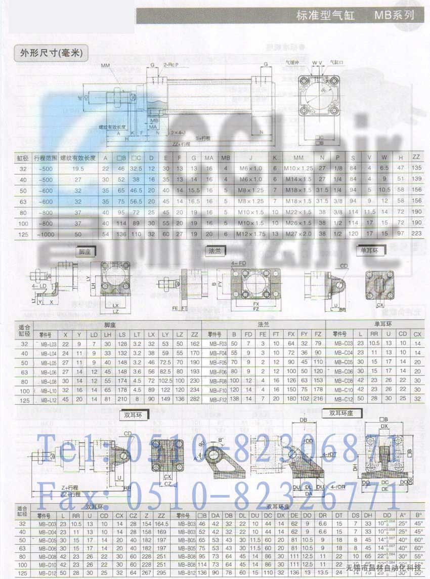 MDBB40-250,MDBB40-300,MDBB40-350,MDBB40-400,標(biāo)準(zhǔn)型氣缸,