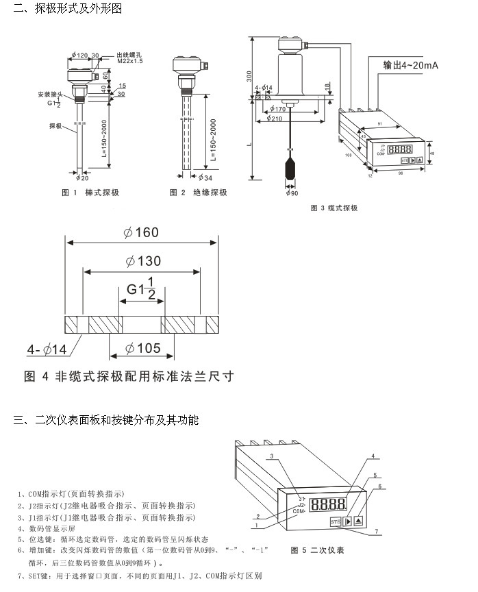 堆積物料。既可以變送4~20mA信號(hào)遠(yuǎn)傳,并同時(shí)在現(xiàn)場(chǎng)數(shù)字直觀顯示料位及上、下限