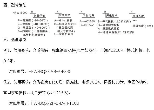 ◆探極形式:棒式(量程≤2米)、纜式(2米≤量程≤30米)、同軸式(液體且量程≤2米)