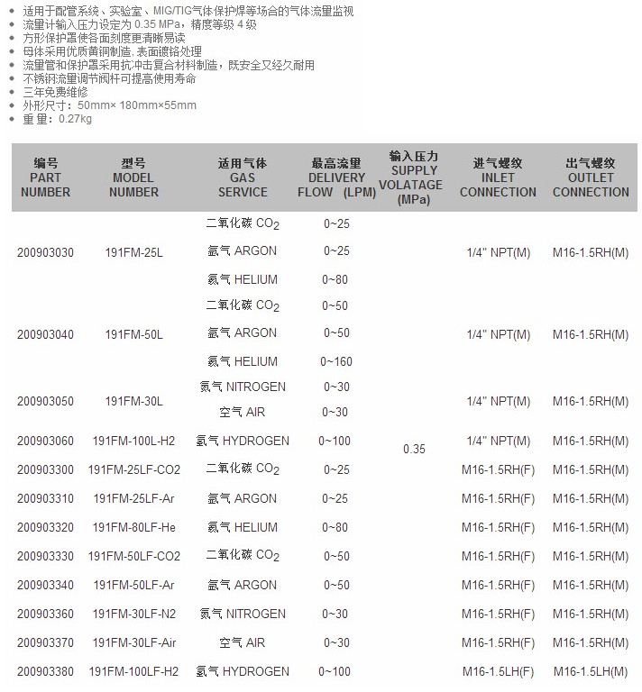 191FM-25LF-Ar,191FM-80LF-He,191FM-50LF-CO2,191FM-50LF-Ar,
