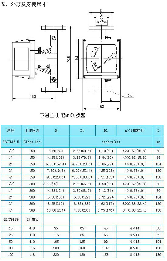 | M9 | 非線性指示器(就地指針顯示瞬時流量) | |||||||||