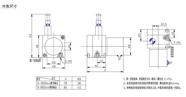 該傳感器屬于微型拉線(繩)位移傳感器,用來(lái)記錄測(cè)量長(zhǎng)度0~1000mm的線性距離、模擬量型和數(shù)字量型輸出,標(biāo)準(zhǔn)化接口,可以堅(jiān)固耐用特別適合短距離,高分辨率的場(chǎng)合,主要特點(diǎn):安裝方便,設(shè)有備用安裝基準(zhǔn)面,根據(jù)需要多種選擇;安裝空間小,安裝難度低;無(wú)需導(dǎo)向。機(jī)械公差不影響測(cè)量精度;廣泛應(yīng)用于直線導(dǎo)軌系統(tǒng),液壓氣缸系統(tǒng)、伸縮系統(tǒng),倉(cāng)儲(chǔ)位置定位,壓力機(jī)械。造紙機(jī)械,紡織機(jī)械、金屬板材機(jī)械、印刷機(jī)械、水平控制儀、建筑機(jī)械等相關(guān)尺寸測(cè)量和位置控制;可外接PLC二次儀表,單片機(jī)等采集系統(tǒng)。