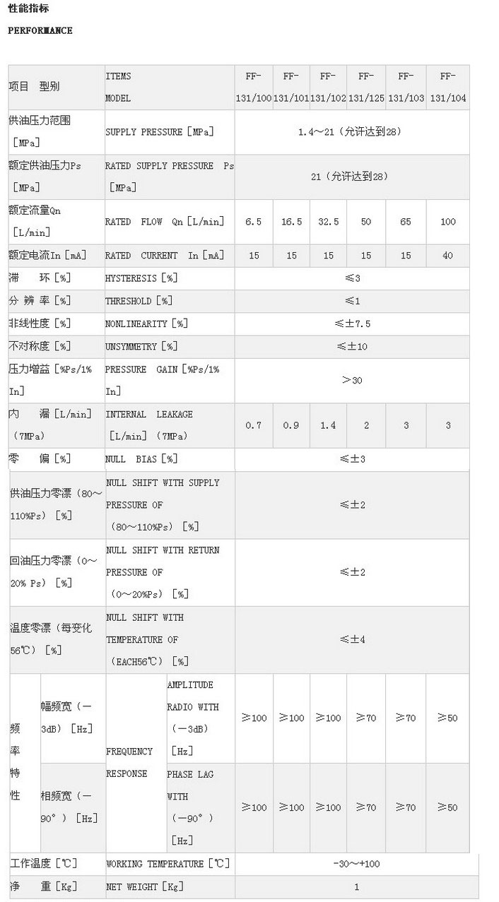 FF-131/100,FF-131/101,FF-131/102,FF-131/125,FF-131/103,FF-131/104,電液伺服閥