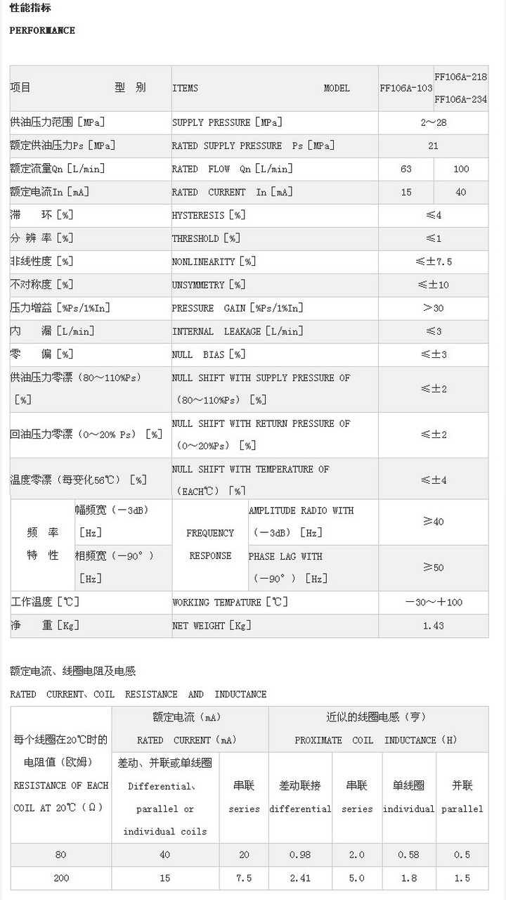 FF106A-103,FF106A-218,FF106A-234,電液伺服閥