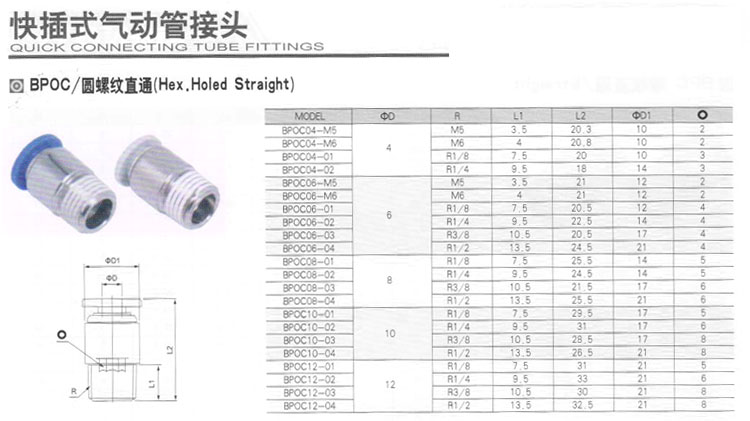 BPOC04-M5,BPOC06-M5,BPOC08-01,BPOC10-01,BPOC12-01,BPOC04-M6,快插式氣動管接頭 |