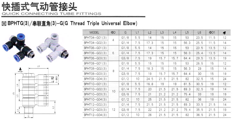 BPHT04-G01(3),BPHT06-G01(3),BPHT08-G01(3),BPHT10-G01(3),BPHT12-G02(3),快插式氣動(dòng)管接頭