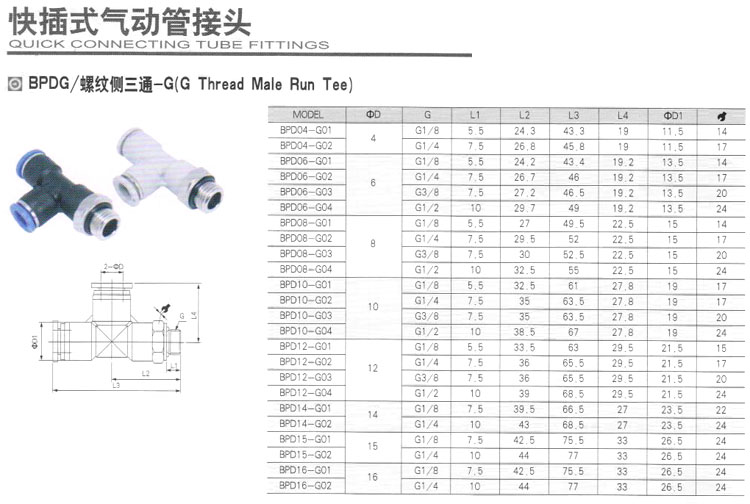 BPD04-G01,BPD06-G01,BPD08-G01,BPD10-G01,BPD12-G01,BPD14-G01,BPD15-G01,BPD16-G02,快插式氣動(dòng)管接頭