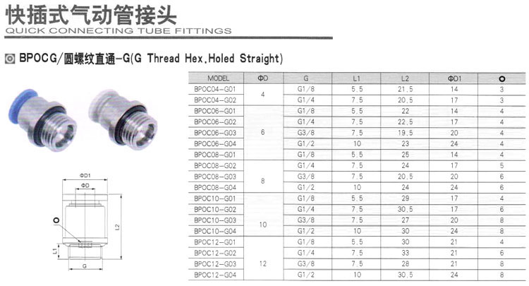 BPOC04-G01,BPOC06-G01,BPOC08-G01,BPOC10-G01,BPOC12-G01,BPOC04-G02,快插式氣動(dòng)管接頭