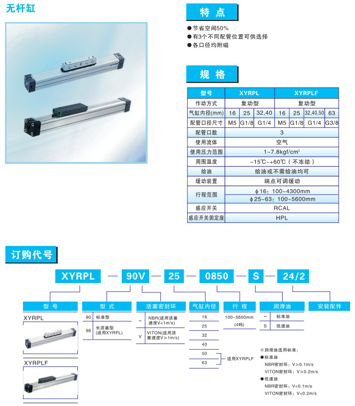 XYRPL-90V-16-0850,XYRPL-98V-25,XYRPLF-90V-32,XYRPL-90V-50,無(wú)桿氣缸