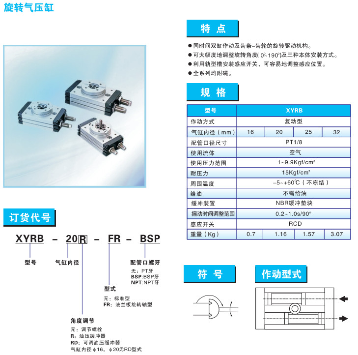 XYRB-16,XYRB-20,XYRB-25,XYRB-32,XYRB-16RD-FR-NPT,擺動(dòng)氣缸