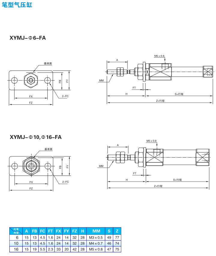 XYMJ-11-6-15M,XYMJ-13,XYMJ-15,XYMJ-21-6-30M,XYMJ-27,筆型氣缸