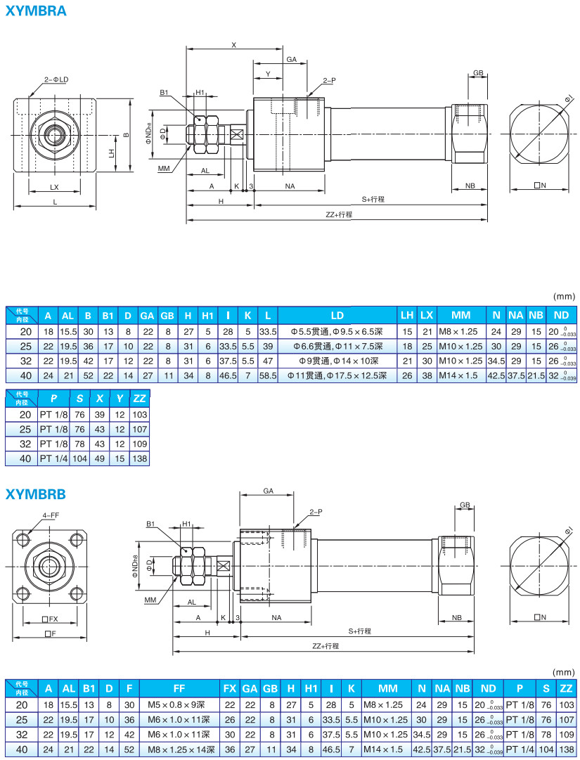XYMBRA-11-20-20-BSP,XYMBRA-11-25,XYMBRB-11-32,XYMBRB-11-40,迷你氣缸