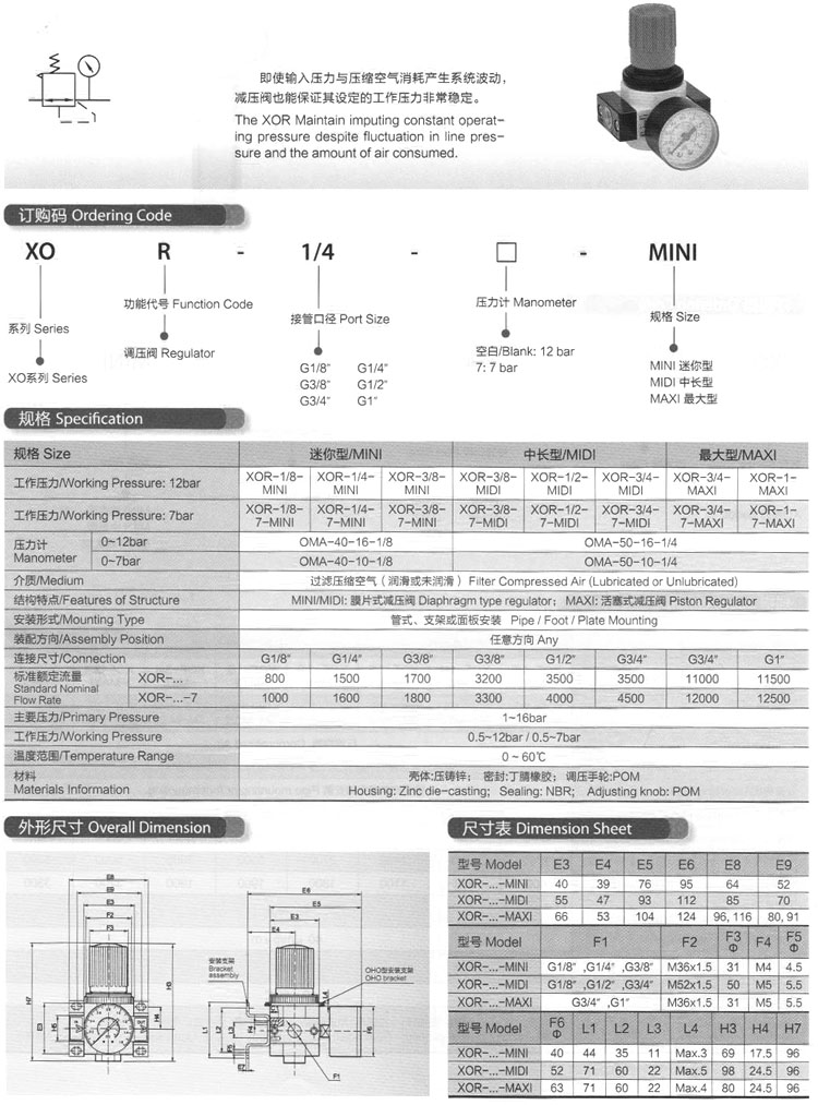 XOR-1/8-MINI,XOR-3/8,XOR-3/4,XOR-1/4,XOR-1/2,XOR-1,調(diào)壓閥