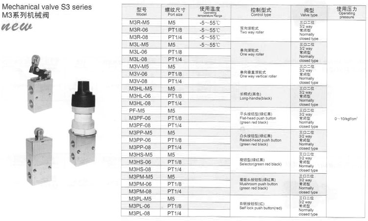 M3R-M5,M3L-06,M3V-08,M3HL-06,M3PF-M5,M3PP-06,M3HS-06,M3PM-M5,機械閥