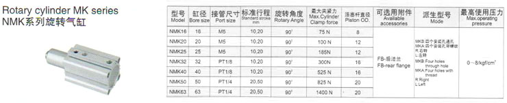 NMK16,NMK20,NMK25,NMK32,NMK40,NMK50,NMK63,旋轉(zhuǎn)氣缸