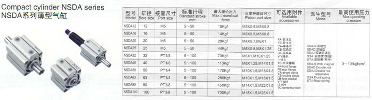 NSDA12,NSDA16,NSDA20,NSDA25,NSDA32,NSDA40,NSDA50,NSDA63,NSDA80,NSDA100