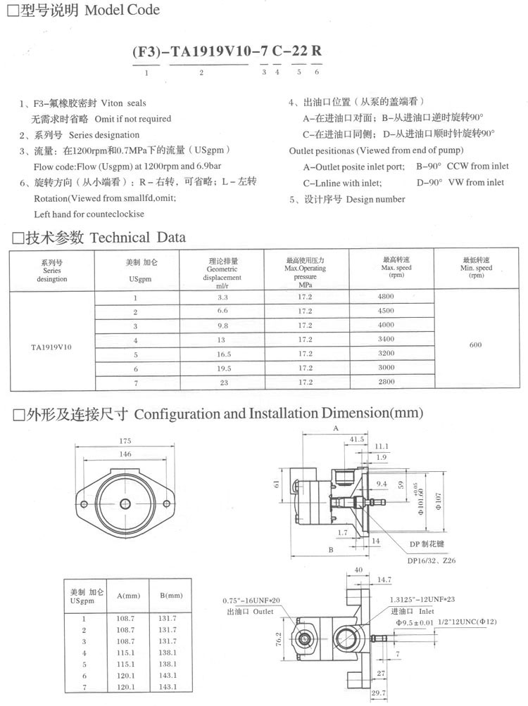 TA1919V10-1A-22R,TA1919V10-2D-22R,TA1919V10-3C-22L,TA1919V10-4D-22L,葉片泵