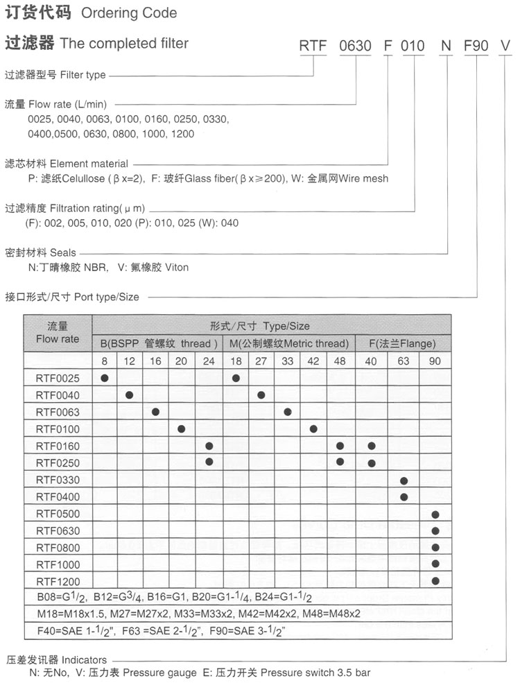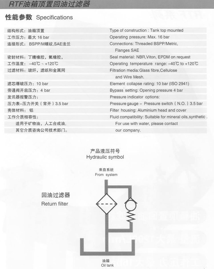 RTF0025,RTF0040,RTF0063,RTF0100,RTF0160,RTF0250,RTF0330,RTF0630,RTF0800,RTF1000,RTF1200,回油過濾器 |
