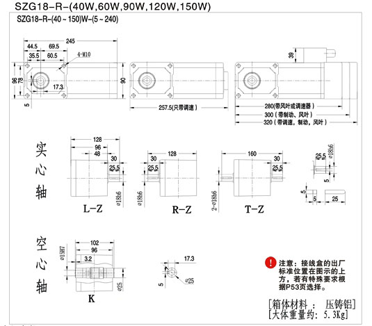 SZG18-R-40W,SZG18-R-60W,SZG18-R-90W,SZG18-R-120W,SZG18-R-150W,雙曲面齒輪減速機