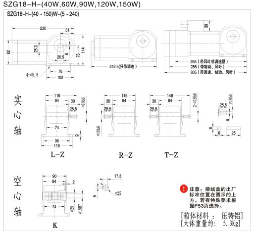 4、高速比,單箱體可實現(xiàn)多段速,速比可達1/5~1/240,扭力大;