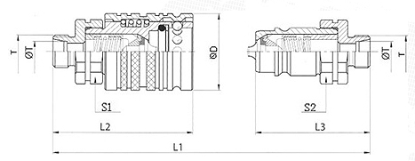 KSW系列快速接頭是連接彈簧加載鎖定裝置的作用下球和外套鎖定,完成單手推或拉動(dòng)鎖定,也可以模塊化連接,符合ISO A系列之08的尺寸要求,并且超過該系列的性能要求。