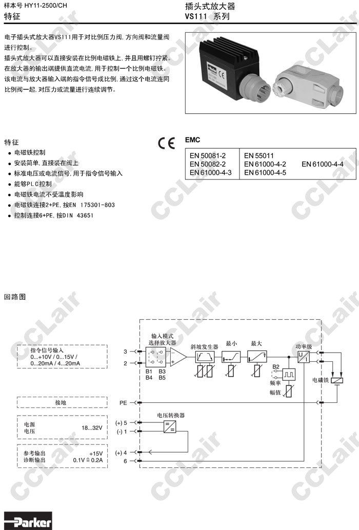 VS111-000-20,VS111-100-20,VS111-200-20,VS111-800-20,Parker插頭式放大器