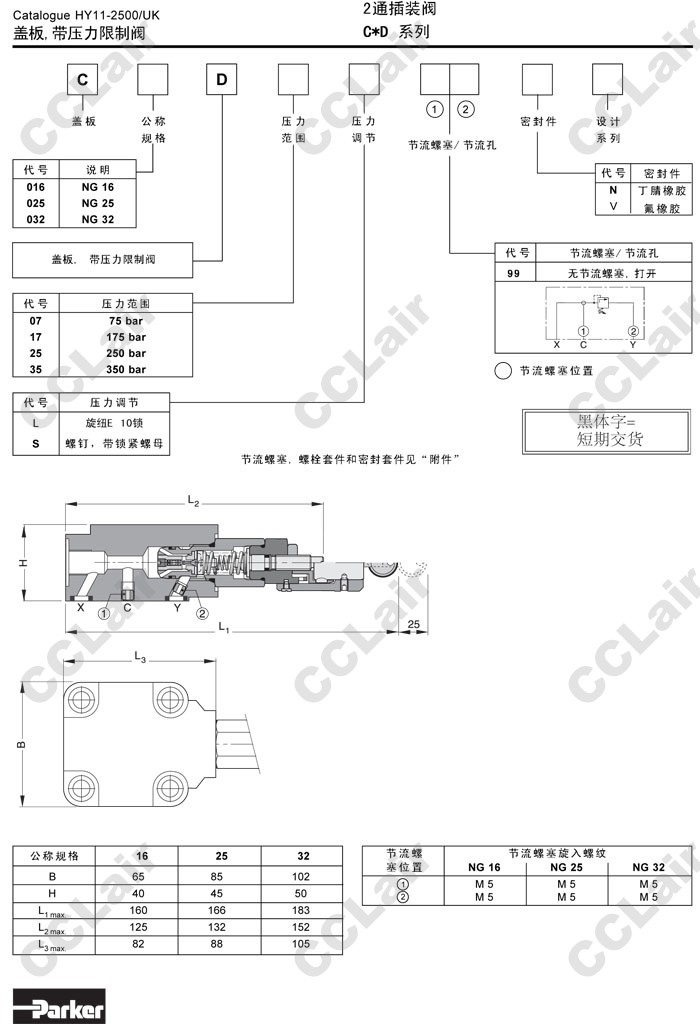 C016D,C025D,C032D,C016D07L99N,C025D07L99N,C032D07L99N,C016D07S99N,C025D07S99N,Parker2通插裝閥蓋板 |