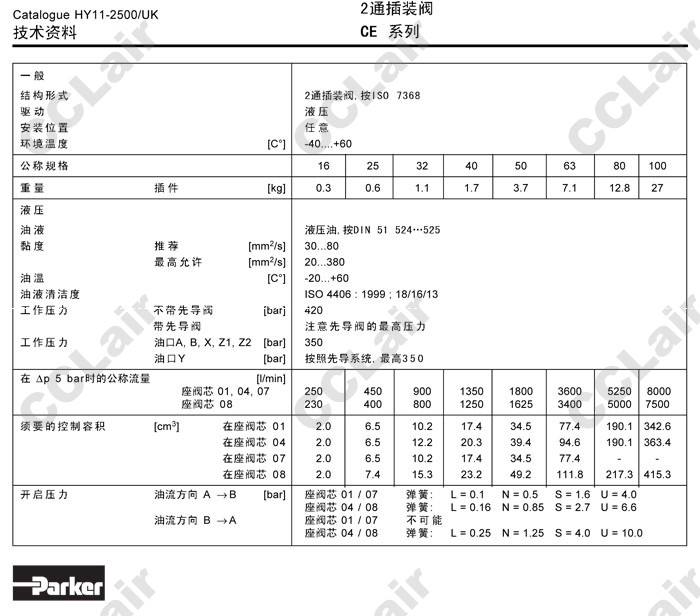CE016,CE025,CE032,CE040,CE050,CE063,CE080,CE100,CE016C01L99N,CE016C01N99N,Parker2通插裝閥 |