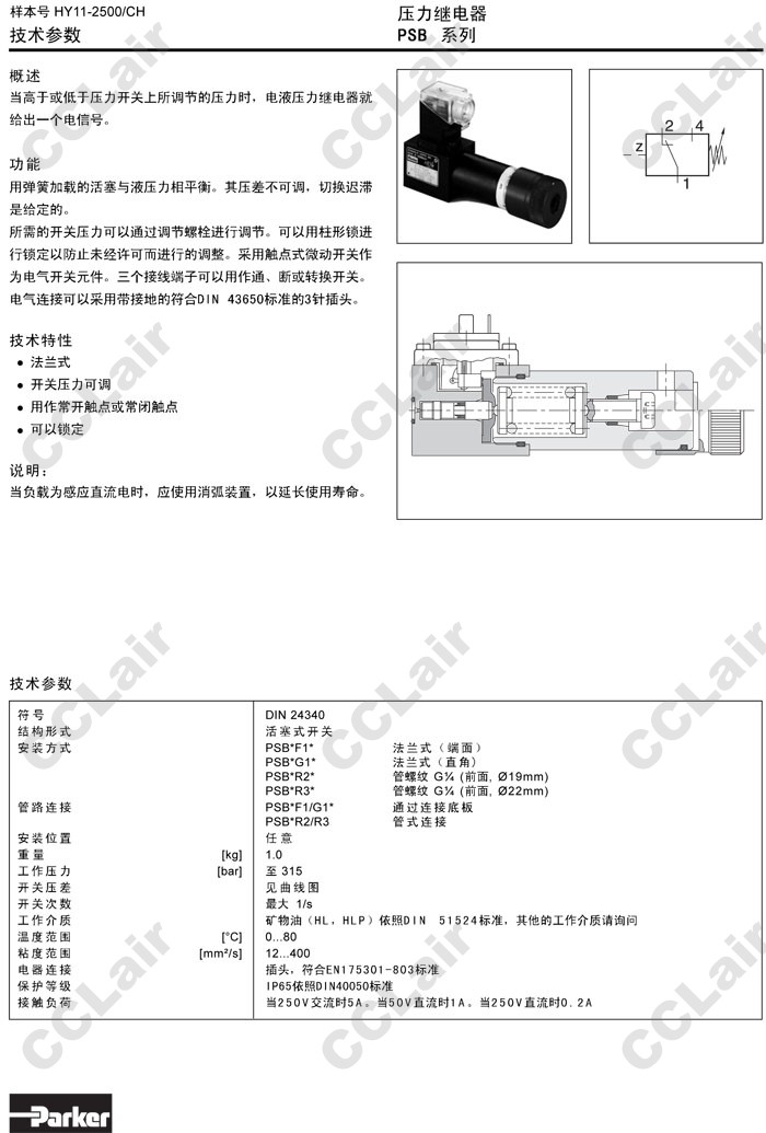 PSB040,PSB100,PSB160,PSB250,PSB040AF1A4,PSB100AF1A4,PSB160AF1A4,PSB250AF1A4,Parker壓力繼電器 |