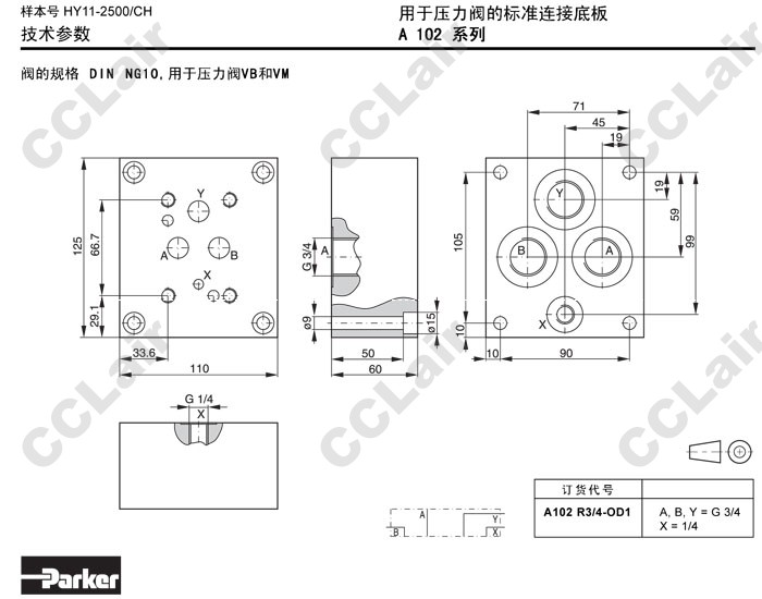 A102R3/4-OD1,Parker標(biāo)準(zhǔn)連接底板