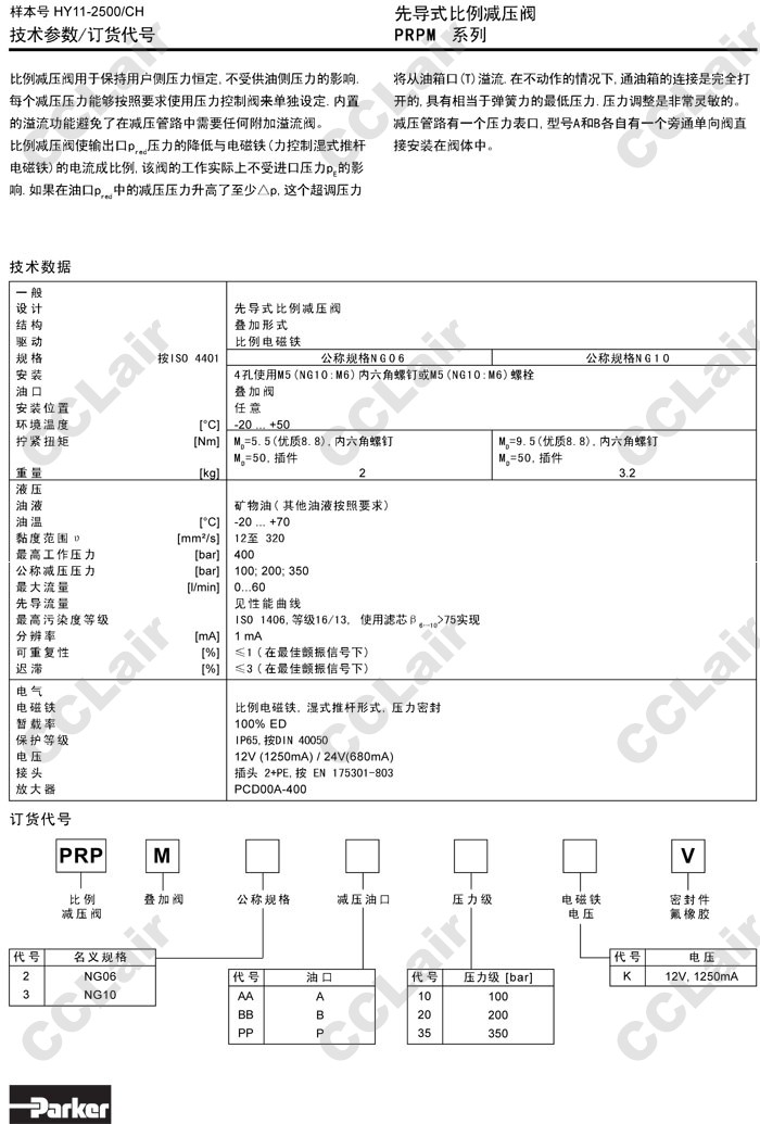 PRPM2AA10K,PRPM2BB10K,PRPM2PP10K,PRPM3AA10K,PRPM3BB10K,PRPM3PP10K,Parker先導(dǎo)式比例減壓閥