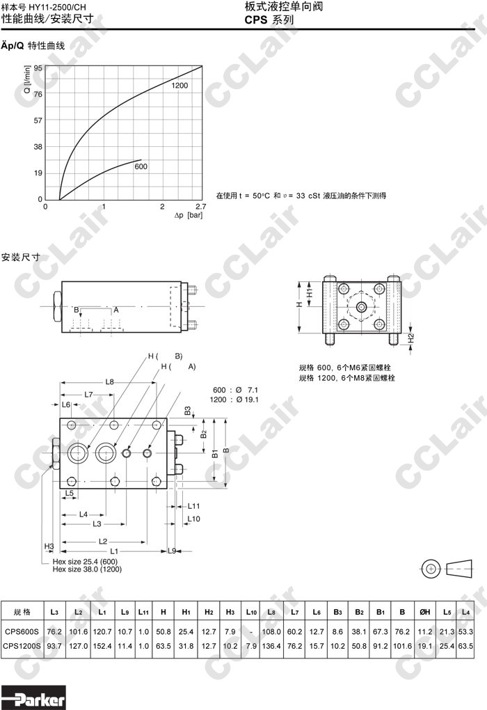 CPS600S5M,CPS600S5V,CPS600S40M,CPS600S40V,CPS1200S5M,CPS1200S5V,CPS1200S40M,CPS1200S40V,Parker板式液控單向 |