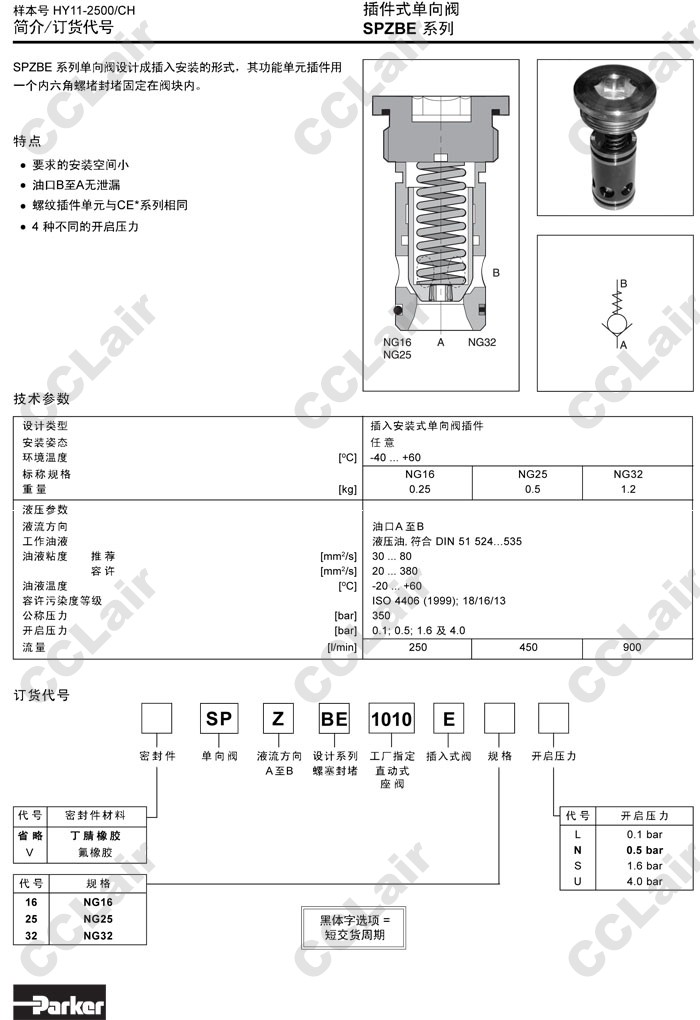 SPZBE1010E16L,SPZBE1010E25L,SPZBE1010E32L,SPZBE1010E16N,SPZBE1010E25S,Parker插件式單向閥 |