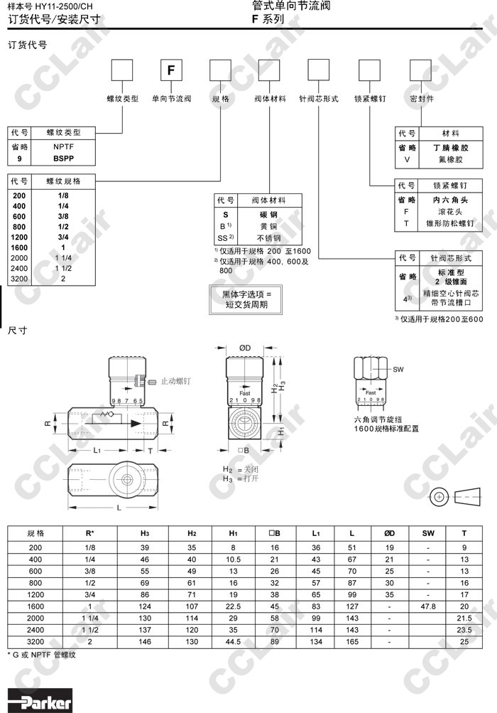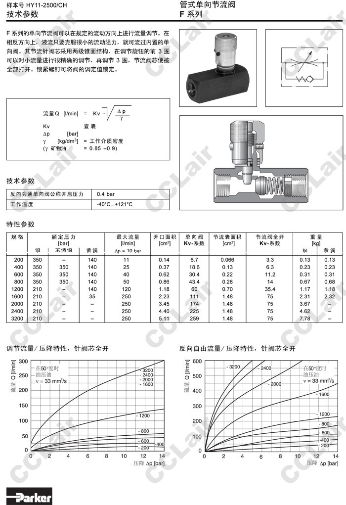 F200,F400,F600,F800,F1200,F1600,F2000,F2400,F3200,F200S,F200S4,Parker管式單向節(jié)流閥