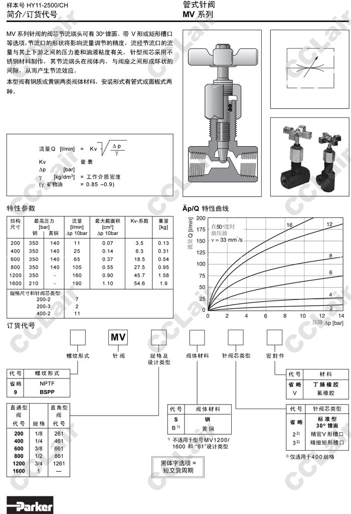 MV200,MV400,MV600,MV800,MV261,MV461,MV661,MV861,MV1261,MV200S,MV261S,Parker管式針閥 |