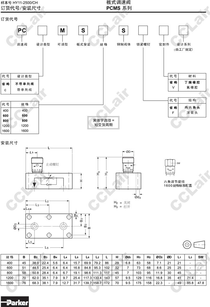 PCCMS400S,PCCMS600S,PCCMS800S,PCCMS1200S,PCCMS1600S,Parker板式調(diào)速閥