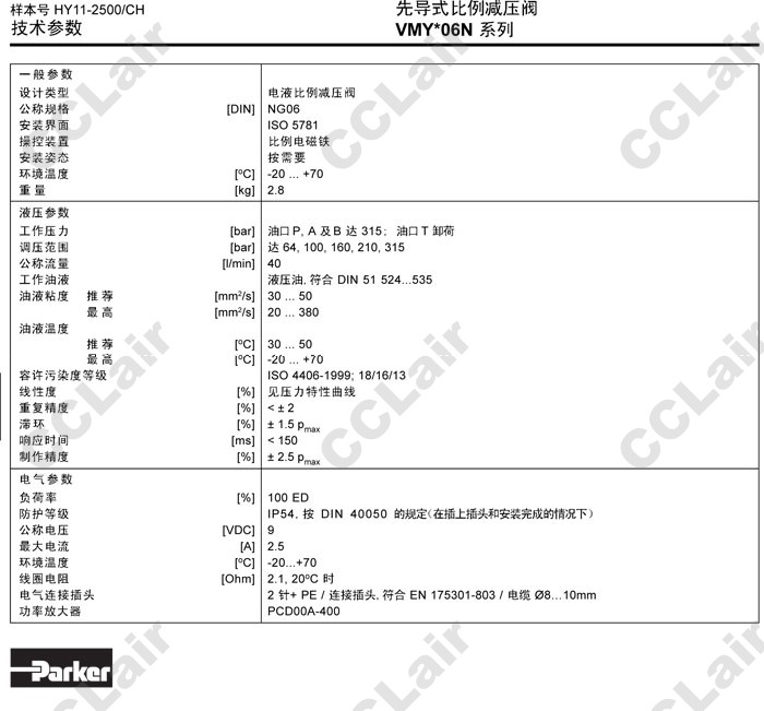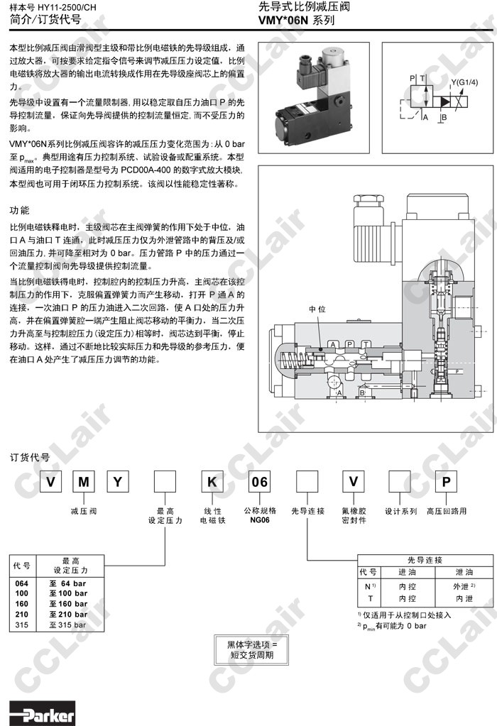 VMY064K06,VMY100K06,VMY160K06,VMY210K06,VMY315K06,Parker先導式比例減壓閥