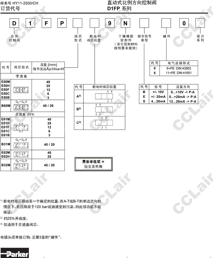 D1FPE50,D1FPB60,D1FPE01,D1FPB31,D1FPE02,D1FPB32,D1FPE50MA9NB00,Parker直動式比例方向控制閥 |
