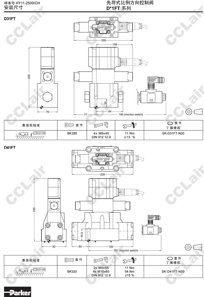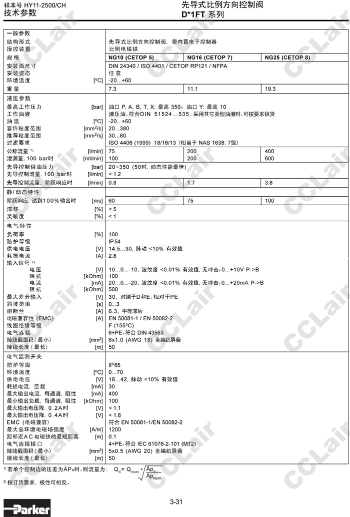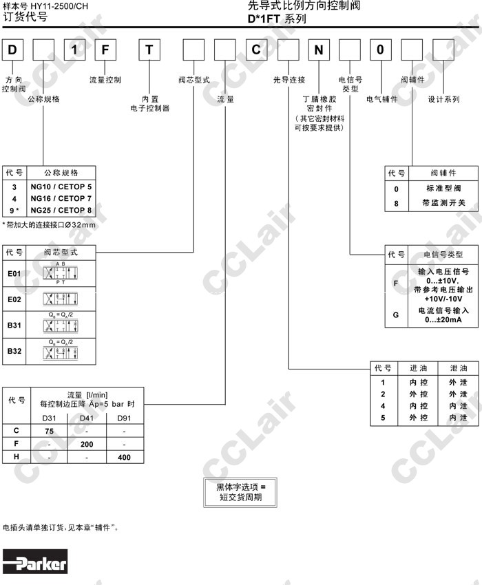 D31FTE,D41FTE,D91FTE,D31FTE01CC1NF00,D41FTE01FC1NF00,D91FTE01HC1NF00,Parker先導(dǎo)式比例方向控制閥
