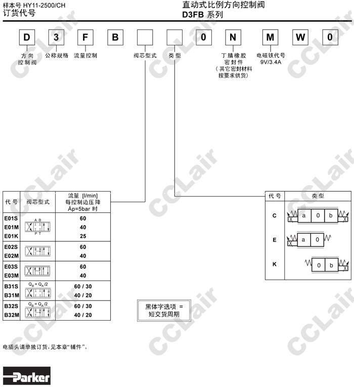 D3FBE01,D3FBE02,D3FBE03,D3FBB31,D3FBB32,D3FBE01SC0NMW0,D3FBE03MC0NMW0,Parker直動(dòng)式比例方向控制閥