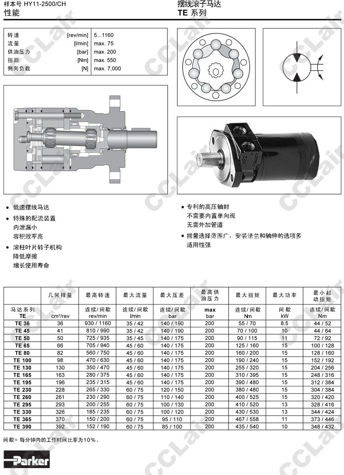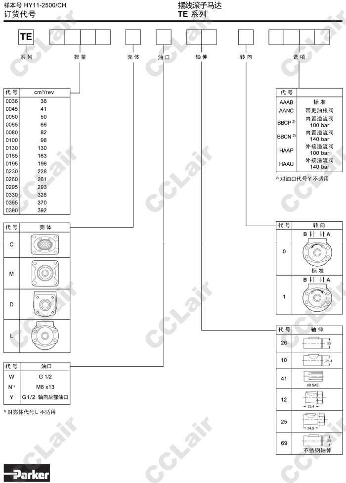 TE0165,TE0195,TE0230,TE0260,TE0295,TE0330,TE0365,TE0390,Parker擺線(xiàn)滾子馬達(dá)