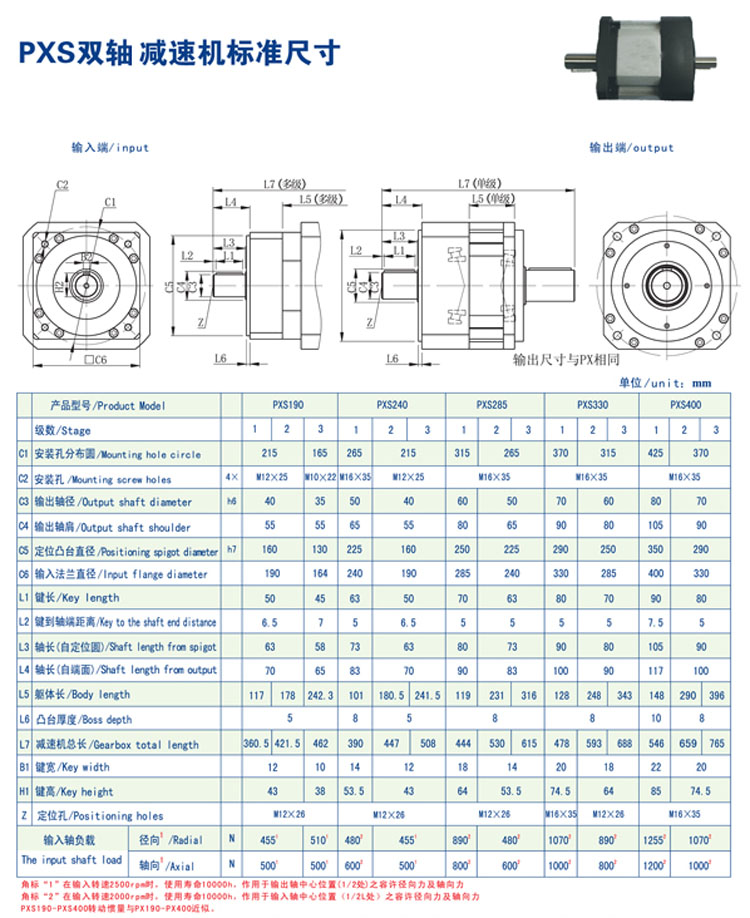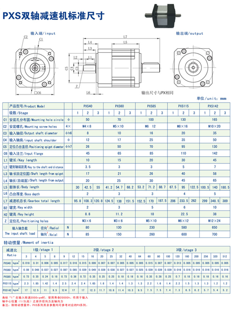PXS40,PXS60,PXS85,PXS115,PXS142,PXS190,PXS240,PXS285,PXS330,PXS400,雙軸減速機 |