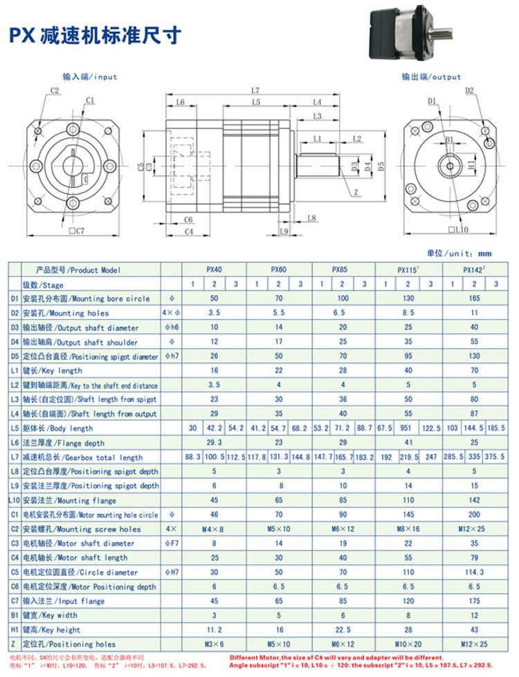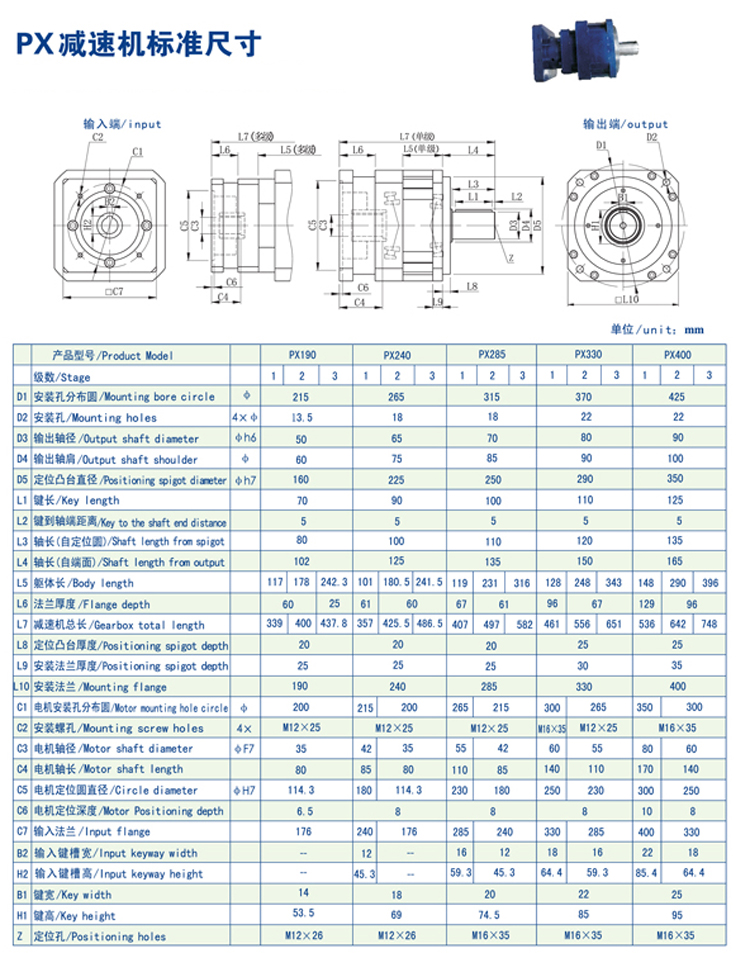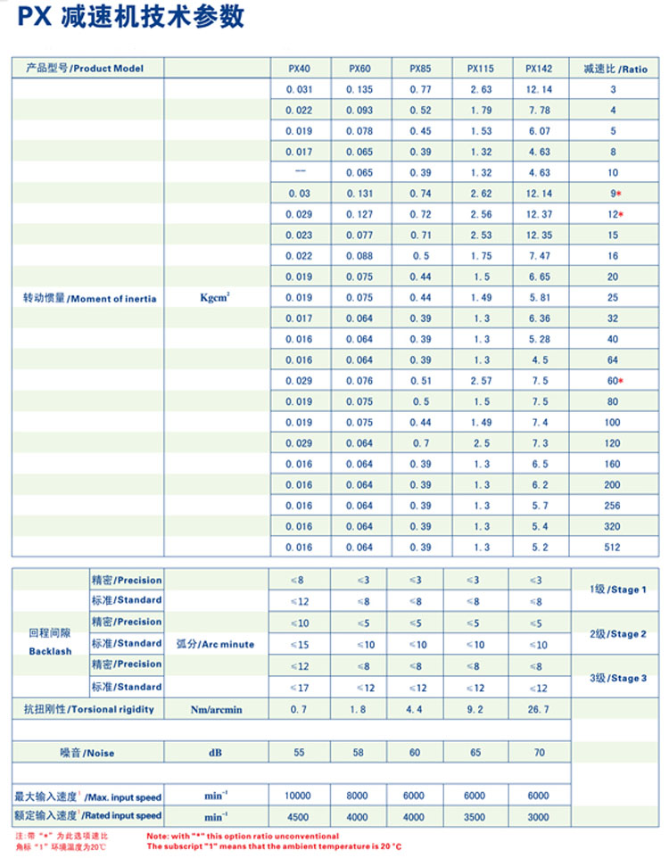 PX40,PX60,PX85,PX115,PX142,PX190,PX240,PX285,PX330,PX400,伺服減速機(jī) |