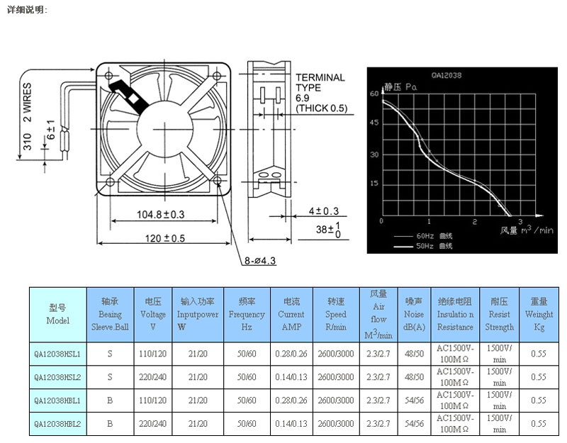 QA12038HSL1,QA12038HSL2,QA12038HBL1,QA12038HBL2,交流風機