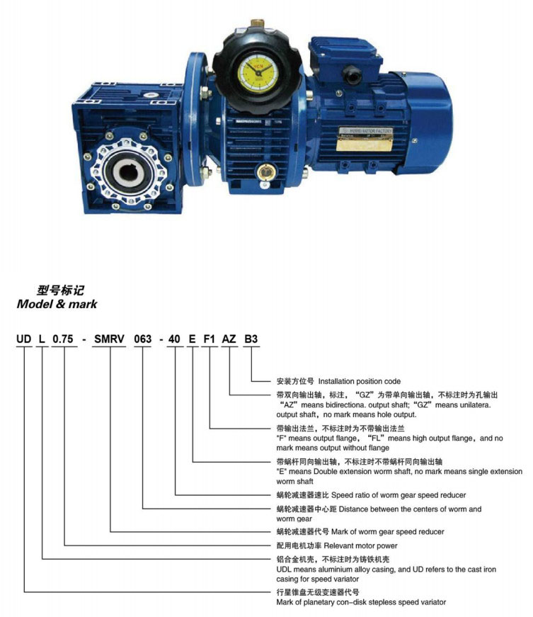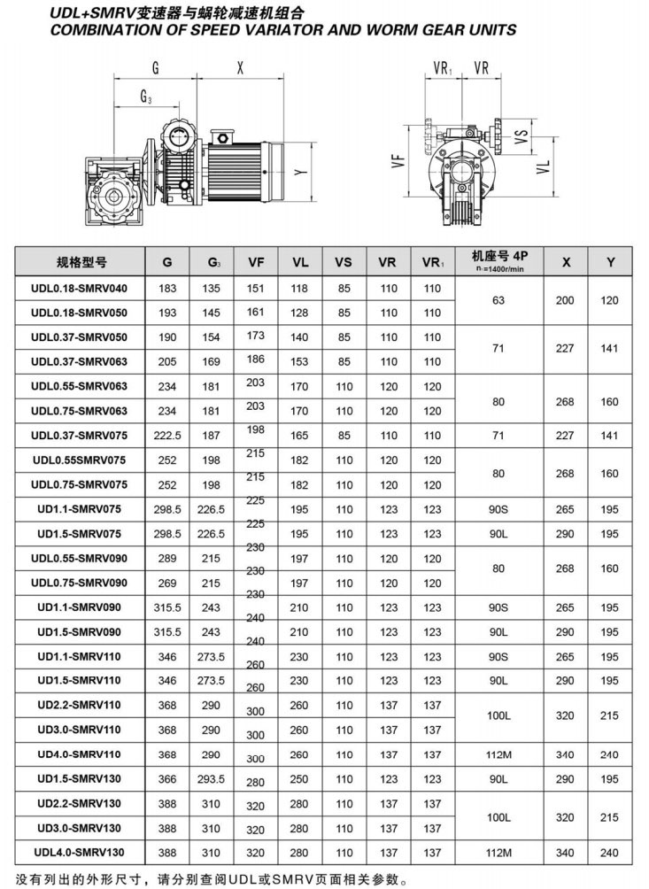 UDL0.37-SMRV050,UDL0.75-SMRV063,UD1.5-SMRV075,UD2.2-SMRV130,變速器與蝸輪減速機組合 |