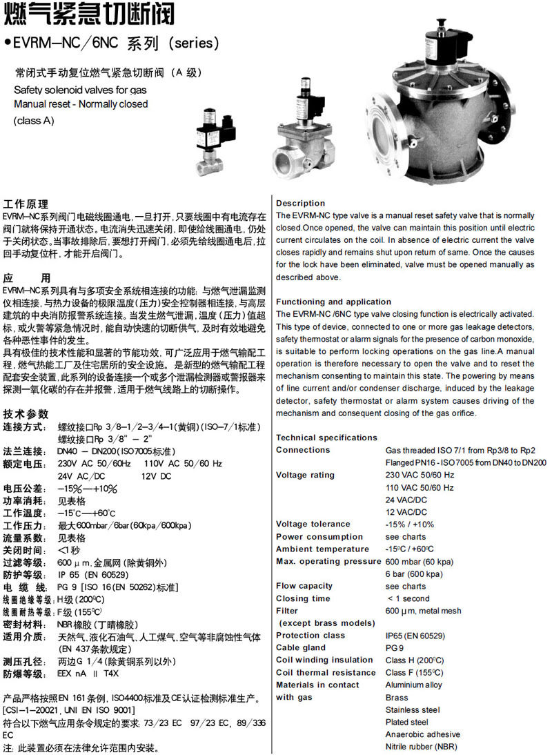 EVRM-NC0/OT,EVRM-NC1/OT,EVRM-NC2/OT,EVRM-NC3/OT,EVRM-NC4,elektrogas燃?xì)饩o急切斷閥