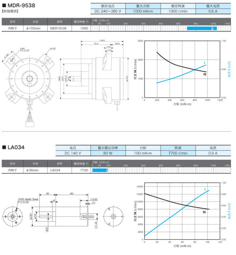 MDR-9538,LA034,LA052-040E,LA052-080E,LA052-110E,內(nèi)轉(zhuǎn)子直流無刷馬達(dá)